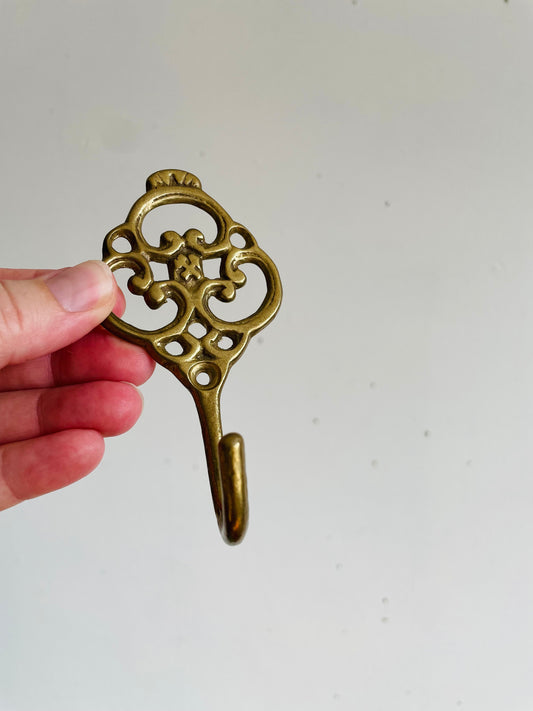 Vintage Brass Hook Hanger with Filigree Design