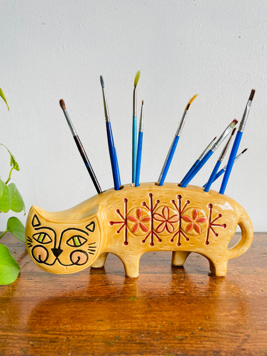 Vintage 1960s Super Fun Ceramic Cat Holder - Lisa Larson Style - Holds Pencils, Paintbrushes, Bud Vase, Etc.
