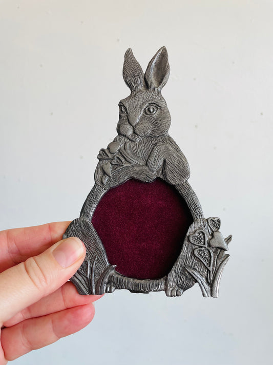 Vintage Metzke Pewter Bunny Rabbit Picture Frame with Easel Backing