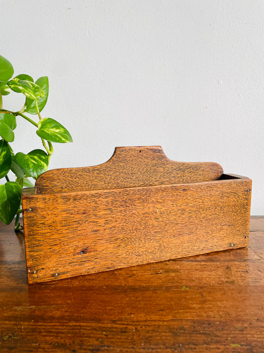 Vintage Wood Wall Pocket - Can Stand or Hang - Letter Holder or Other Storage