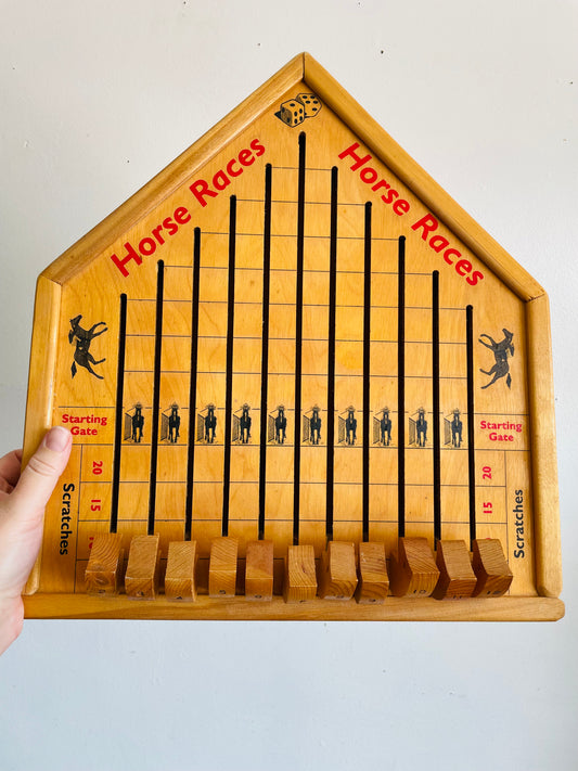 Vintage Rascal Toys Canada Wooden Horse Racing Game - Horses Move Along Board - Also Makes Great Decor! - Just Add Your Own Dice & Deck of Cards