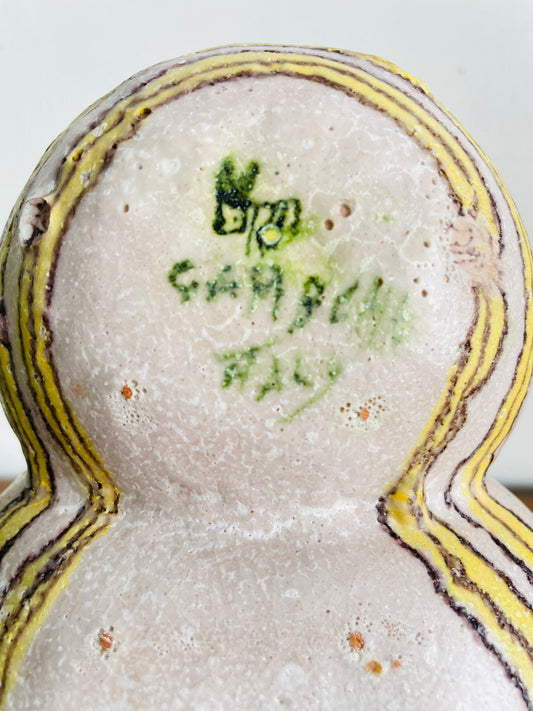 Vintage Mid-Century 1950s Guido Gambone (1909-1969) Ceramic Pottery Divided Bowl Double Dish - La Terrena, Florence - Made in Italy - Donkey Mark - Signed - Modern Abstract Style