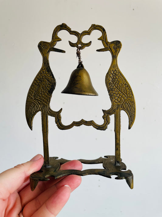Vintage Chinese Brass Double Facing Crane Birds with Hanging Bell Chime
