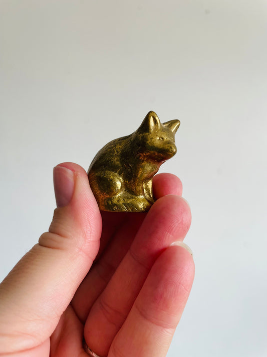 Vintage Adorable Miniature Solid Brass Fox Figurine