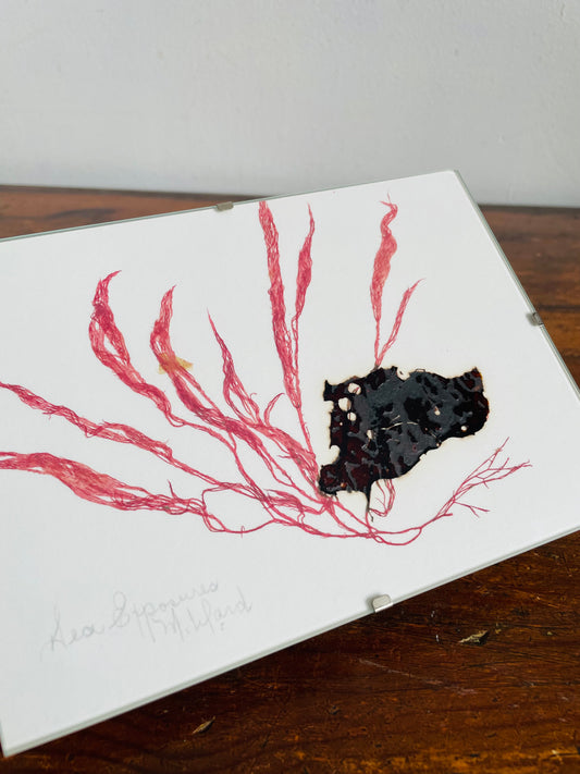 Vintage Pressed Seaweed Original Art - Artist Signed - Marie Ward - North Vancouver BC - Pink 5" x 7"