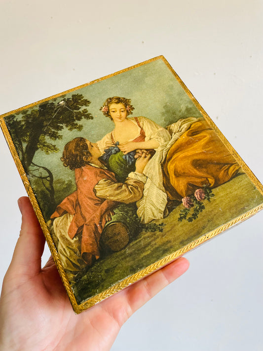 Vintage Florentine Box with Hinged Lid & Scene from François Boucher's Painting "La Musette" - Made in Italy