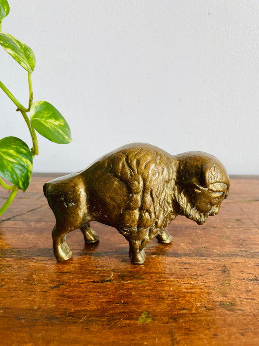 Vintage Extremely Solid & Heavy Brass Buffalo Statue Figurine - 3 lbs.