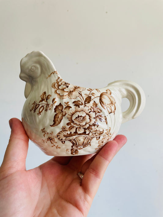 Vintage Crown Devon Fieldings Staffordshire England Chicken Pitcher Creamer Jug with Brown Flower Pattern - Great for Milk or Maple Syrup!