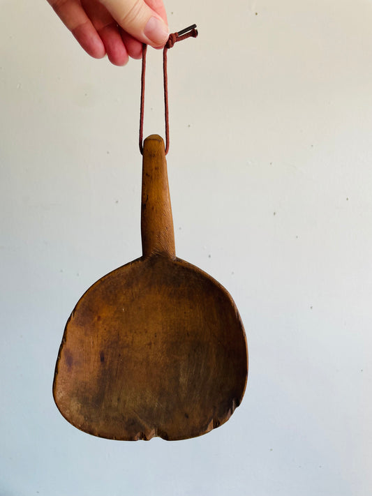 Antique Primitive Wood Farmhouse Kitchen Utensil Set - Scoop Paddle on Rope & Spatula Spoon - Set of 2