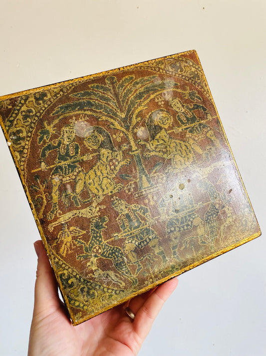 Vintage Florentine Box with Hinged Lid & Red Oseberg Hunters Byzantine Scene - Made in Italy