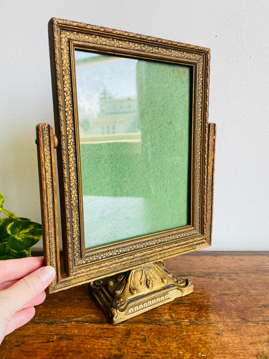 Antique Gold Wood Swinging Picture Frame with Ornate Footed Base
