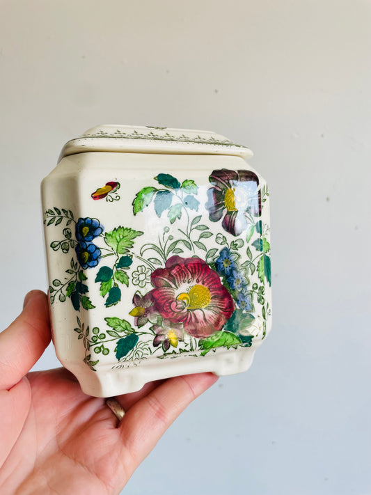 Vintage Mason's Paynsley Pattern Ironstone Tea Caddy Canister Jar with Lid & Ornate Floral Design - Made in England Especially for Rosemary Shelton