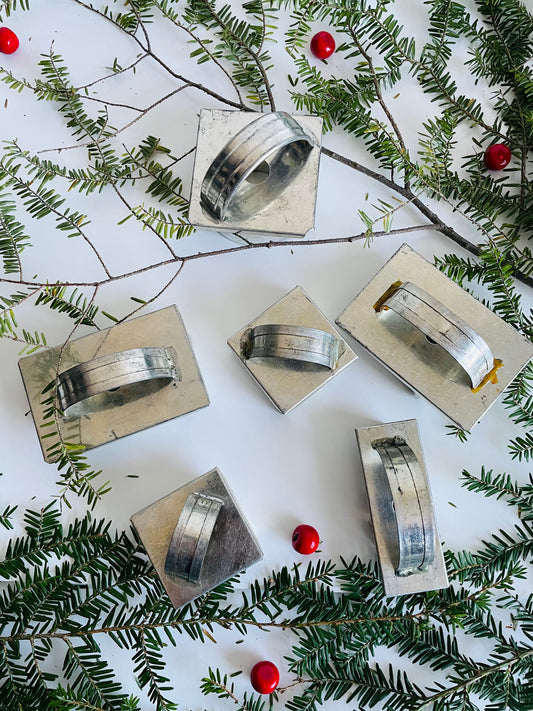 Aluminum Cookie Stamp Cutters with Handle - Circle, Christmas Tree, Holly Leaf, Santa, Star & Bell - Set of 6