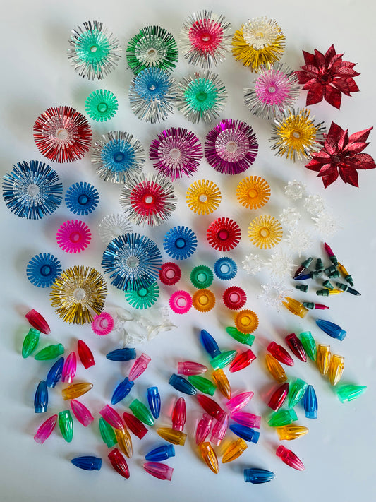 Vintage Collection of Assorted Christmas Light Reflectors & Plastic Bulbs - 107 Pieces