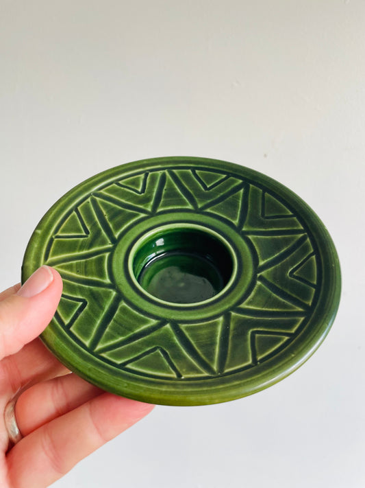 Green Studio Art Pottery Tealight Candle Holder with Triangle Design - Made in Waterloo Ontario