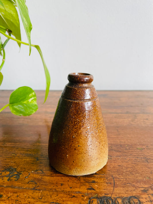 Antique Brown Salt Glaze Stoneware Pottery Cone Shaped Ink Well Bottle - Makes a Great Bud Vase!