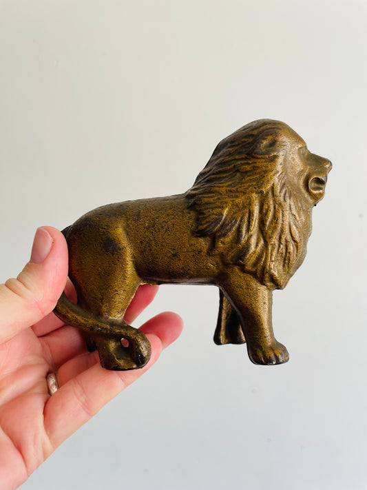 Antique A. C. Williams Heavy & Solid Cast Iron Gold Lion Coin Bank with Right Side Tail