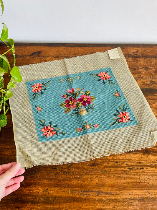 Square Unfinished Needlepoint Embroidery Panel of Flowers - Background Colour Incomplete