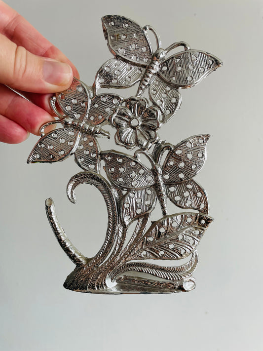 Torino Silver Metal Earring Holder with Butterflies & Flower