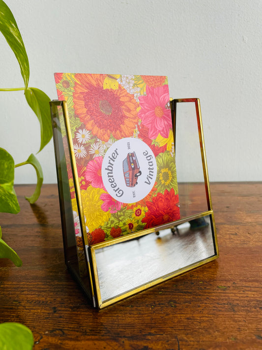 Brass Mirrored Box Holder - Great for Business Cards, Air Plants, Letters, Etc. - Made in Canada