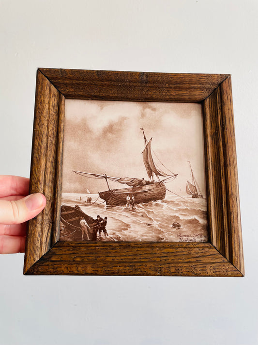 Framed Mosa Tile with Sepia Toned Ship Scene - Made in Holland