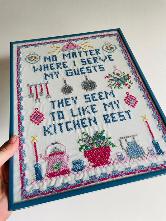 No Matter Where I Serve My Guests They Seem to Like My Kitchen Best - Adorable & Bright Cross Stitch Embroidery Picture