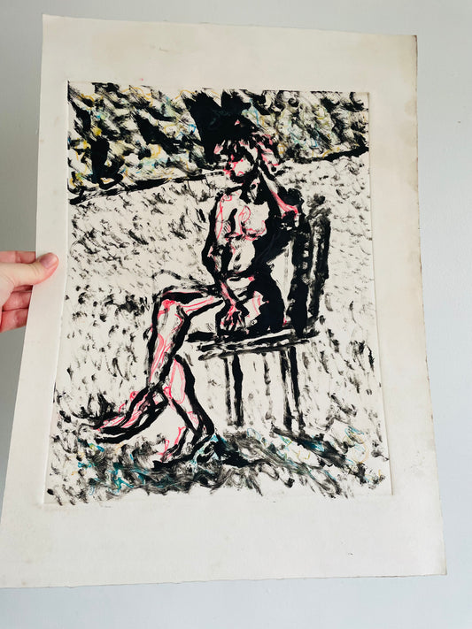 1950s Original Art Mixed Media Painting Sketch - Academic Nude Portrait Study on Paper of Person