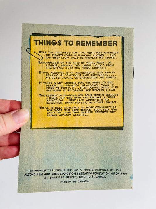 It's Best to Know About Alcohol - Paper Booklet (1961) - Published as a Public Service by the Alcoholism and Drug Addiction Research Foundation of OntarioRegular price $18.00 CADRegular priceUnit price / per-