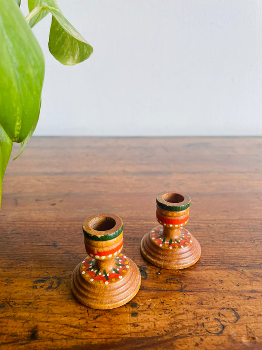 Miniature Hand Painted Wood Candlestick Holders with Folk Art Design - Set of 2Regular price $16.00 CADRegular priceUnit price / per-