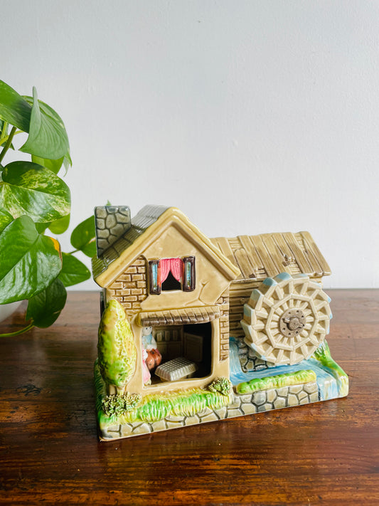 Watermill Cottage House with Dutch People Music Box - Made in Japan