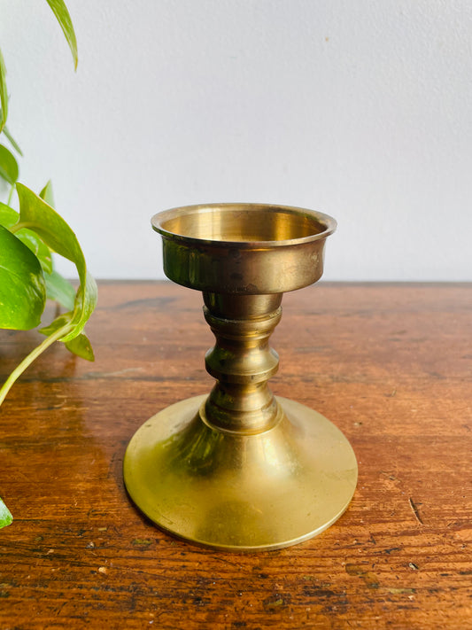 Vintage Heavy & Solid Brass 3.5" Pillar Candle Holder with Spike