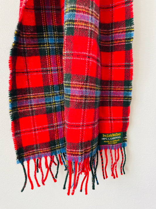 Vintage Ingles Buchan 100% Lambswool Red Tartan Plaid Scarf - Made in Scotland