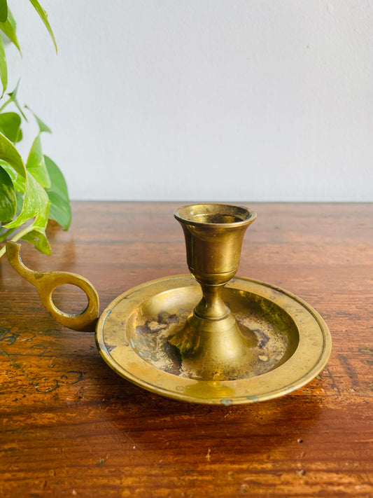Vintage Solid Brass Chamberstick Candle Holder with Swoop Handle