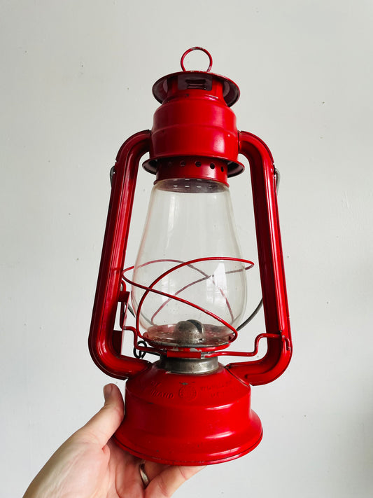 Vintage No. 707 Globe Brand Worldlight Red Metal Lantern - Made in Hong Kong