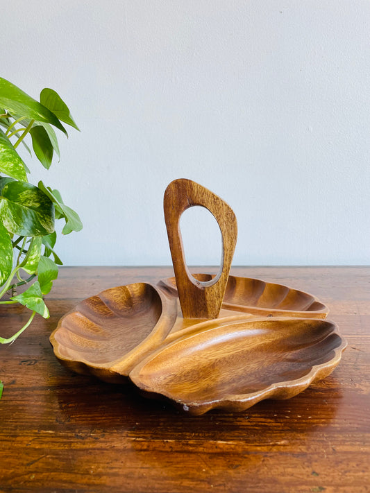 Monkey Pod Wood Divided Tray with Handle - Catchall, Serving, Jewellery, Trinkets, Etc.!