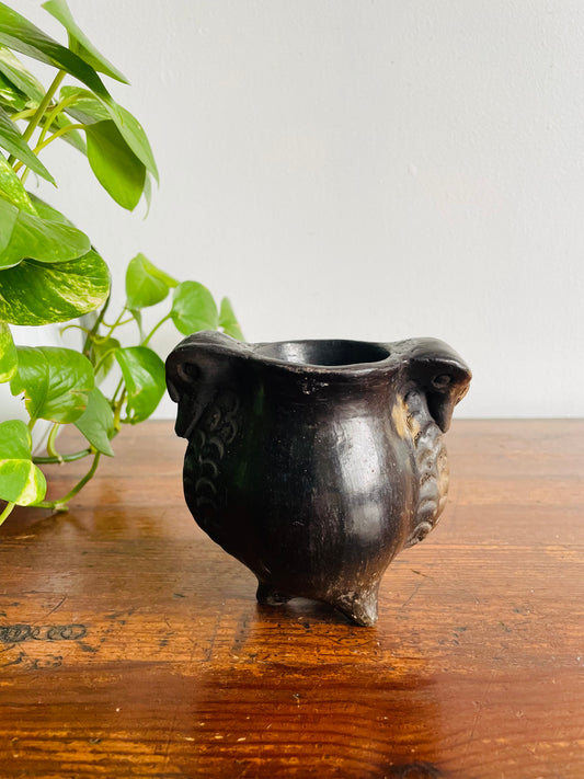 Barro Negro Black Clay Pottery from Oaxaca Mexico - Vase Cup with Tripod Feet & Turkey Bird Design