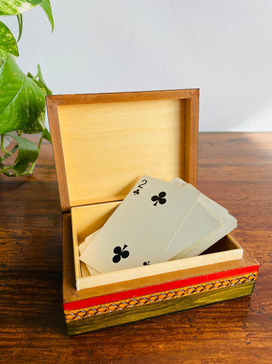 Carved Wood Trinket Box with Hinged Lid & Floral Design - Made in Poland - Great for Holding Card Decks!