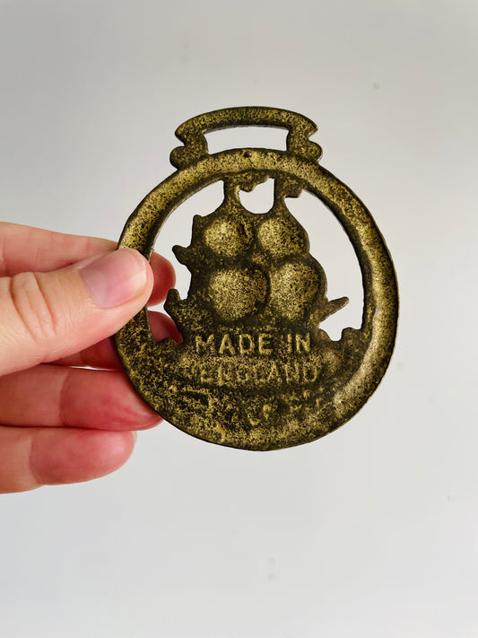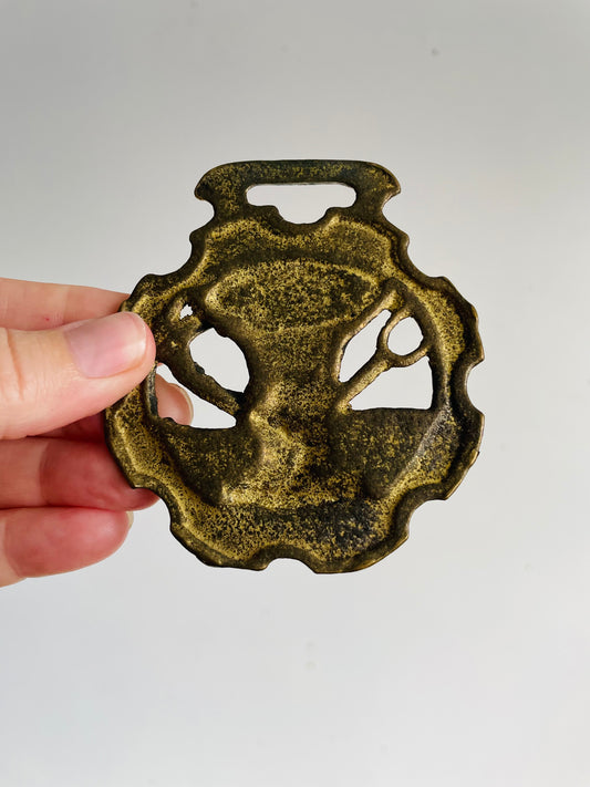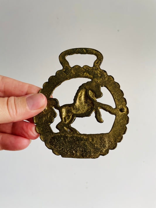 Vintage Horse Brass Medallion Hanging Wall Decor with Jumping Horse