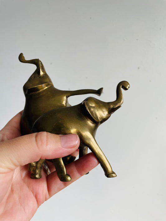 Vintage Solid Brass Pair of Elephants with Raised Trunks - Set of 2