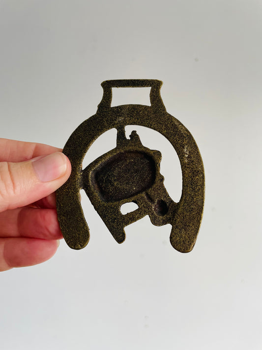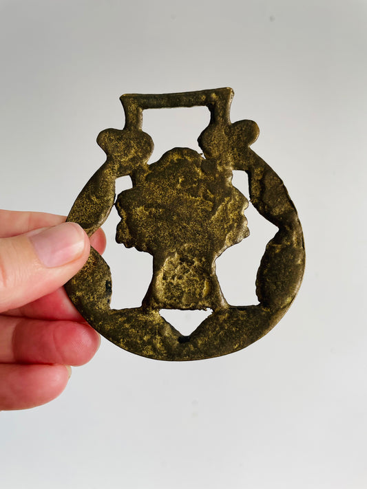 Vintage Horse Brass Medallion Hanging Wall Decor with Bridled Horse & Horseshoe