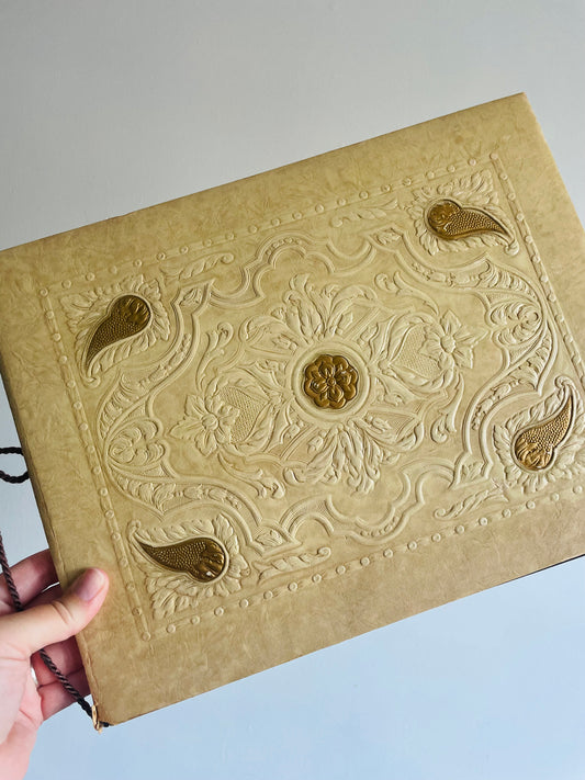 Antique Photo Album or Scrapbook - Cream with Gold Flowers & Filigree - Black Pages - Empty