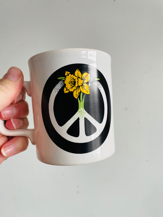 Vintage Kilncraft Peace Sign & Daffodil Flower Mug - Staffordshire England