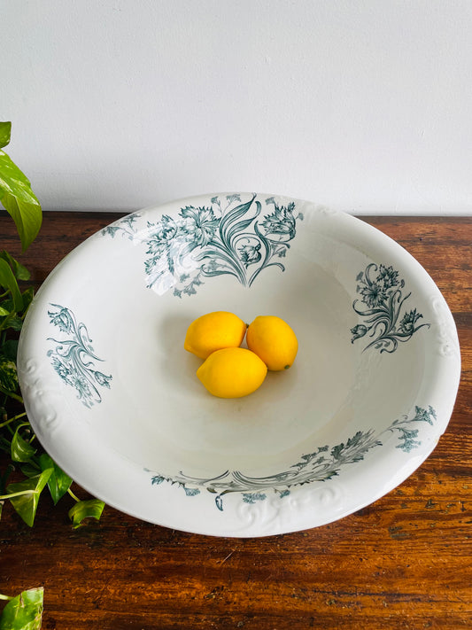 Alejandro Baker & Co. England Giant Ironstone Wash Basin Bowl with Blue Flower Pattern