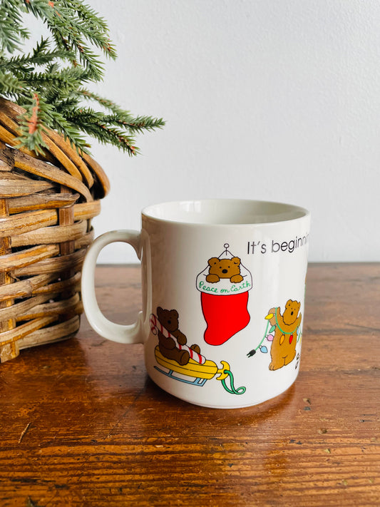 Russ Berrie & Co. Inc. Teddy Bear Mug - It's Beginning to Look a lot Like Christmas - Made in Korea