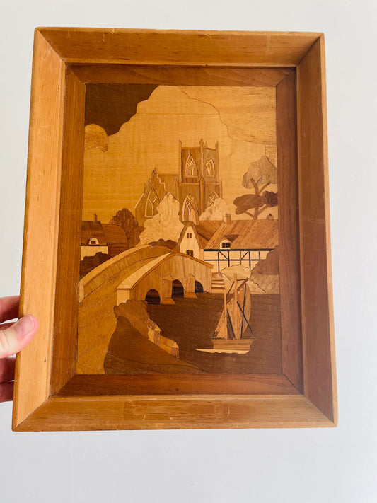 Handmade Framed Inlaid Wood Marquetry Picture - The Village Church by Harold Hurst