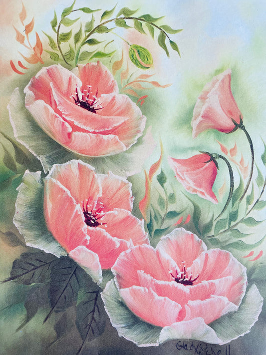 Peach Poppies by Gladys Mitchell (1989) Hot Off The Press Inc. - Floral Lithograph Print Ready for Framing!