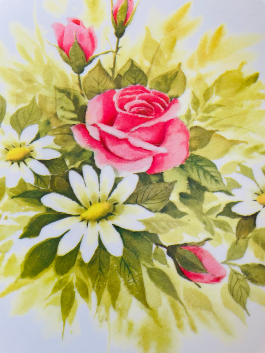 Prolon Melamine Plates with Rose & Daisy Flower Design - Set of 2 - Made in USA