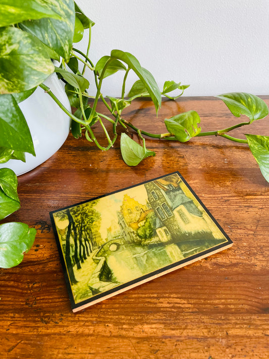 Wooden Picture Plaque of an Amsterdam Canal & Bridge - British Empire Made