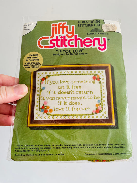Vintage Brand New Jiffy Stitchery Sunset Designs No.639 "If You Love" Designed by Donna Kooler Needlepoint Embroidery Kit - Fits 5" x 7" Frame