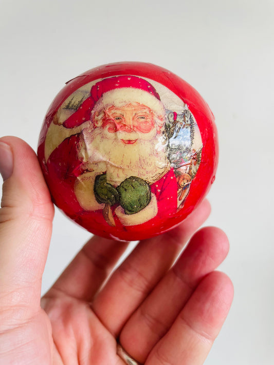 Vintage Collection of Handmade Decoupage Ornaments with Adorable Illustrations - Set of 4 - Deer, Children, Santa